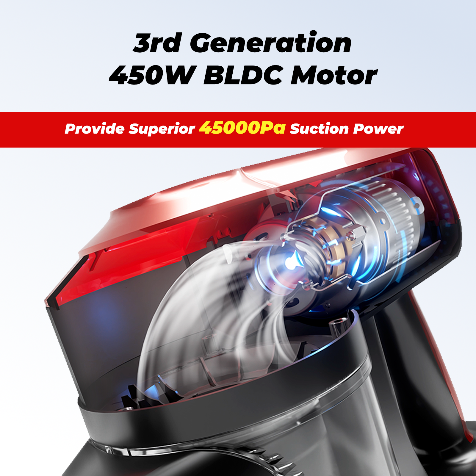 3rd Gen 450W BLDC Motor, Provide 45kPa Suction Power