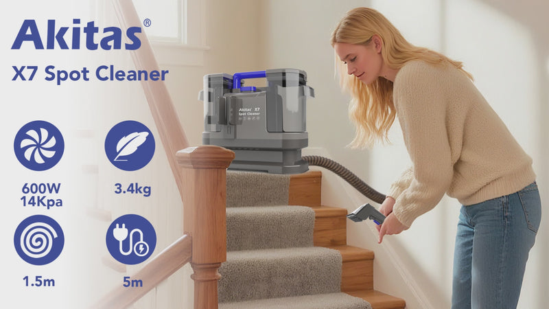 - Powerful & Efficient Cleaning – Equipped with a robust 600W motor and 14KPa strong suction, the Akitas X7 effectively removes deep-set dirt, spills, and stains from carpets, sofas, mattresses, and car seats. It also dries materials faster compared to the previous generation 400W motor.